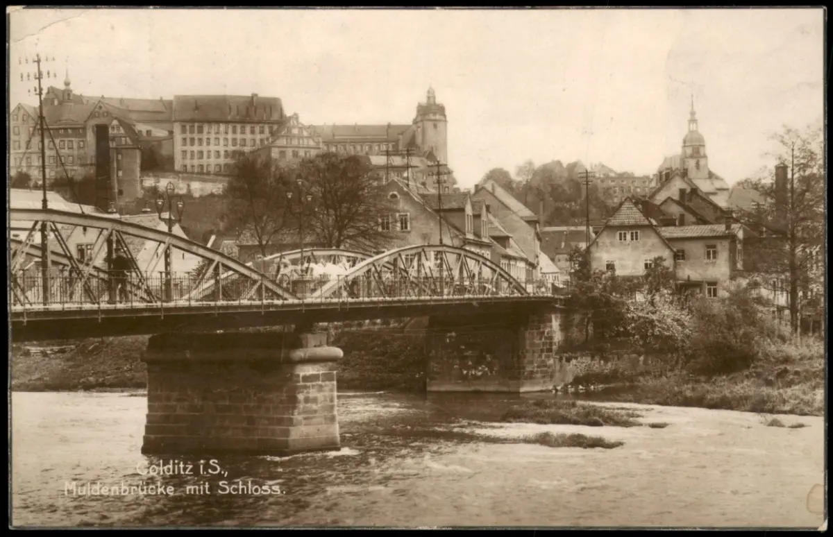 Ansichtskarte Colditz Panorama-Ansicht mit Muldenbrücke und Schloss 1926
