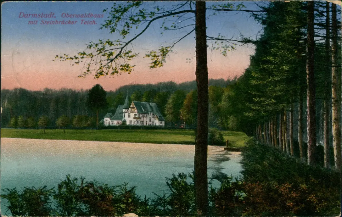 Ansichtskarte Darmstadt Oberwaldhausmit Steinbrücker Teich. 1918