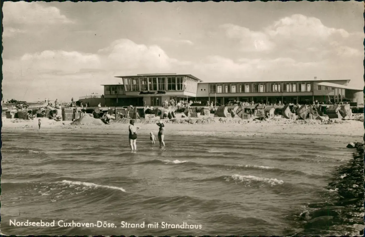 Ansichtskarte Döse-Cuxhaven Strand mit Strandhaus - Fotokarte 1962