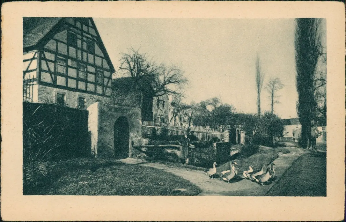Ansichtskarte Dorfpartie Fachwerkhäuser Gänse 1928