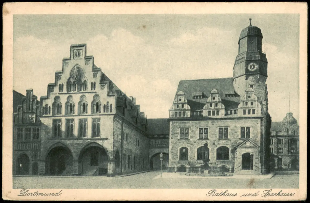 Ansichtskarte Dortmund Rathaus und Sparkasse. 1919
