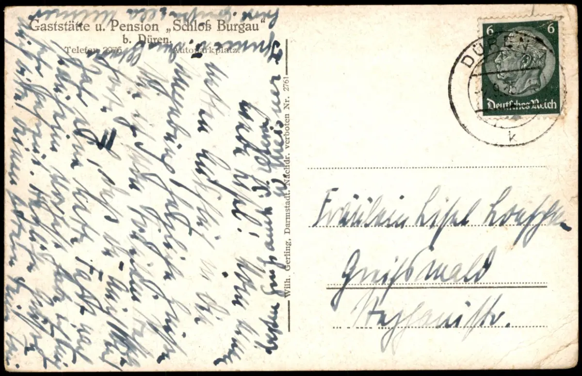 Ansichtskarte Düren Schloß Burgau Ruderer 1935