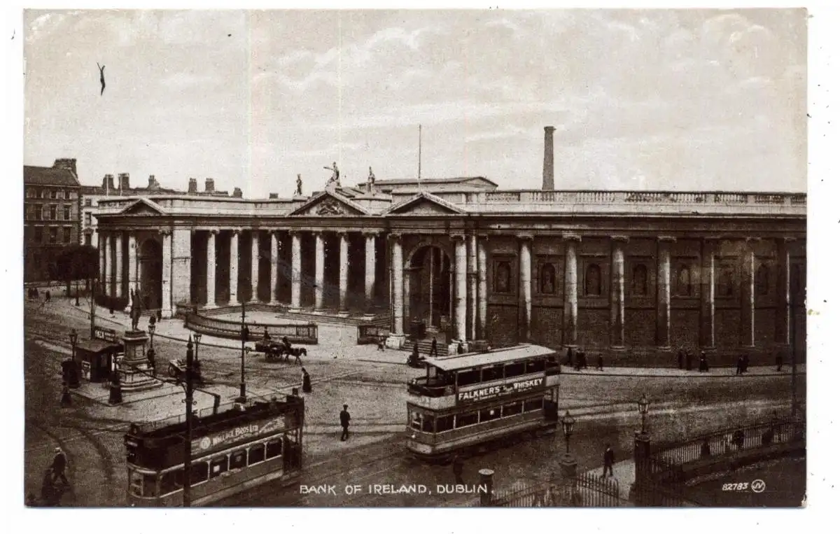 [Ansichtskarte] EIRE / IRLAND - DUBLIN, Bank of Ireland, Tram.