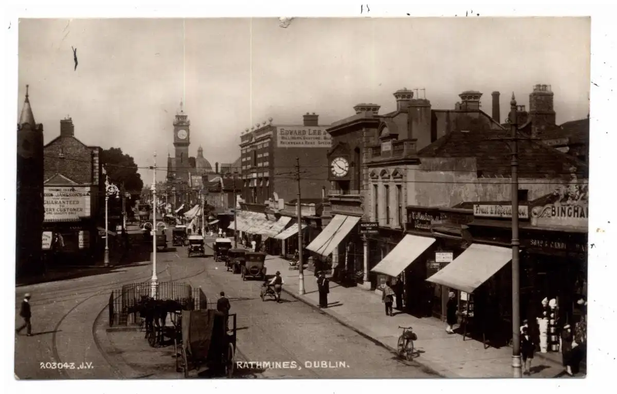 [Ansichtskarte] EIRE / IRLAND - DUBLIN - RATHMINES, Street scene. Tram, small pressure point, 1928.