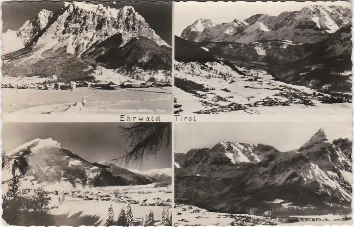 [Ansichtskarte] Ehrwald - Tirol 1000 m mit Zugspitzmassiv - 1954.