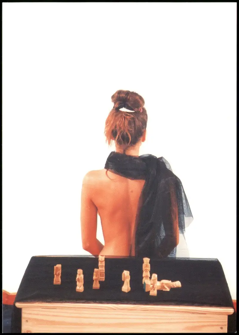 Ansichtskarte Erotik Frau vor Schachbrett Schach Chess 1999
