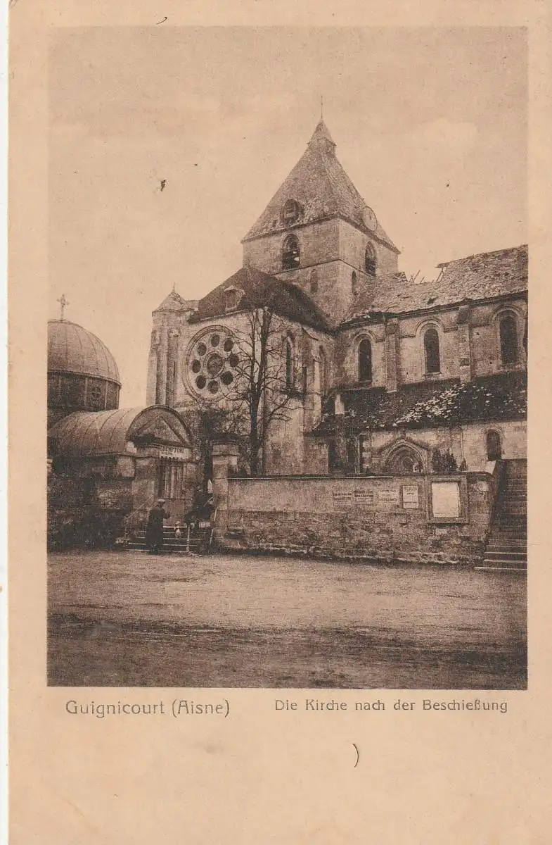 Titel: F 02190 GUIGNICOURT 1. Weltkrieg, die zerstörte Kirche, 1916, Verlag Trenkler