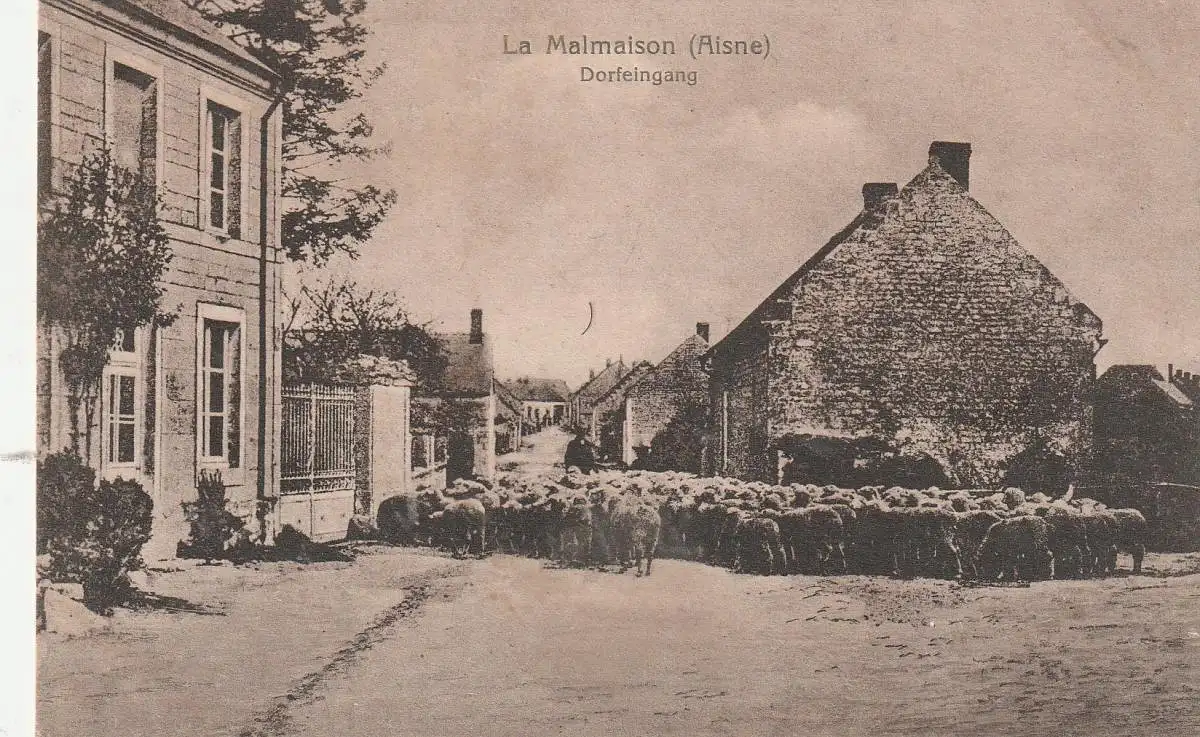 [Ansichtskarte] F 02190 LA MALMAISON 1. Weltkrieg, Dorfeingang mit Schafherde, 1916, Verlag Trenkler.