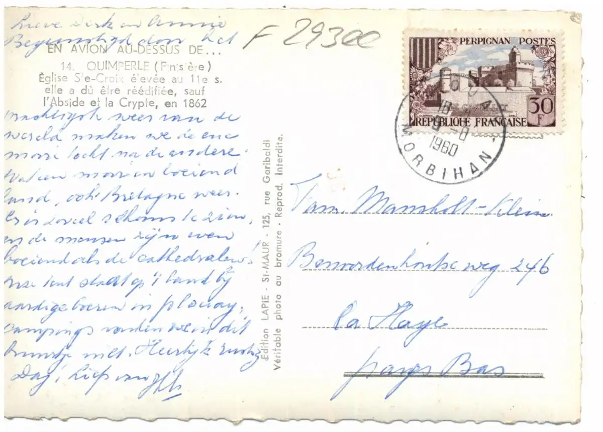 [Ansichtskarte] F 29300 QUIMPERLE, Eglise Ste. Croix, vue airienne, 1960.