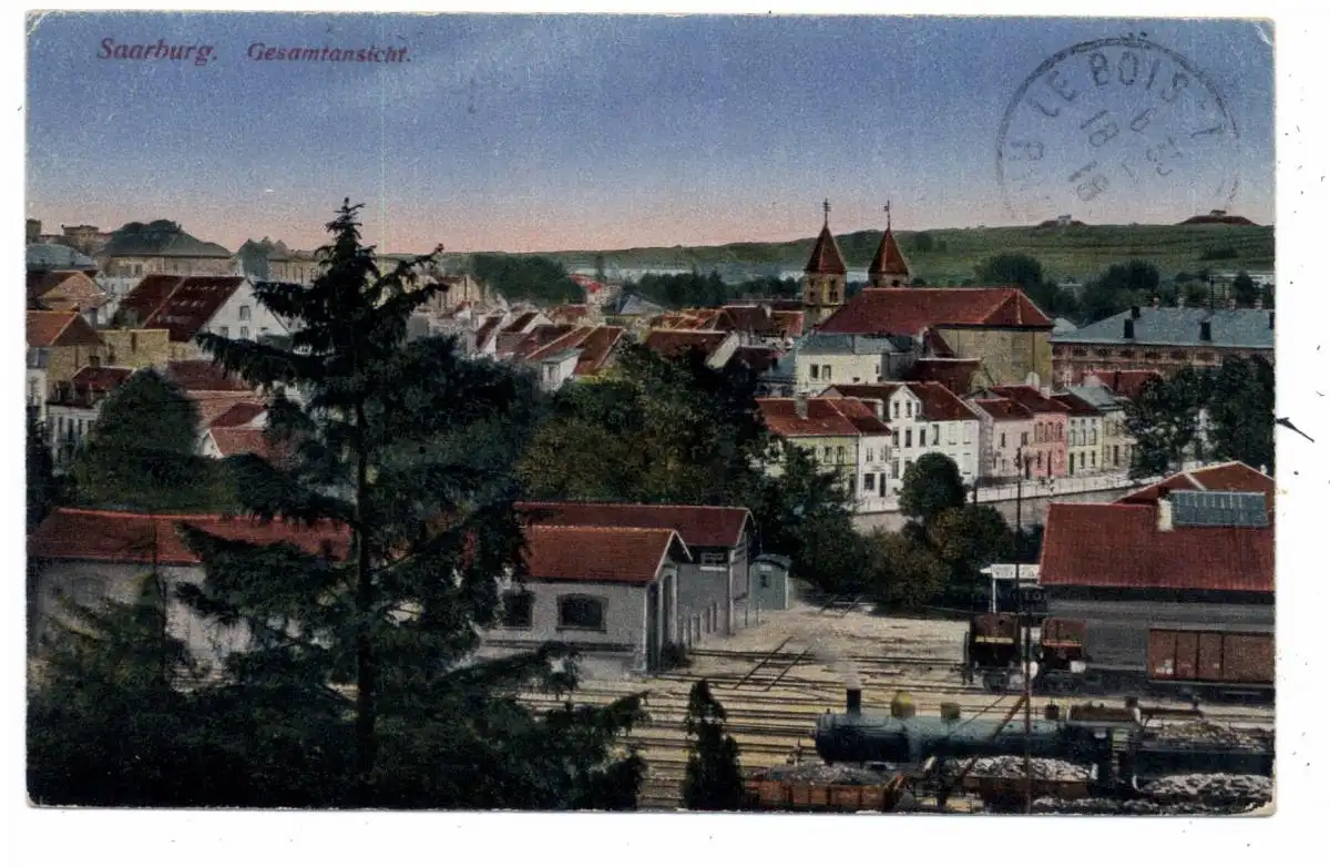 Titel: F 57400 SAARBURG / SARREBOURG, Blick über den Bahnhof auf die Stadt