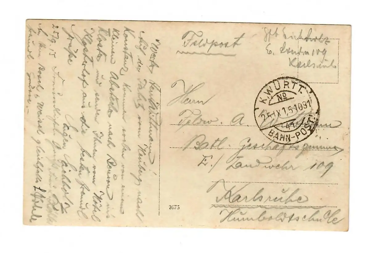 Ansichtskarte Feldpost Flugzeug als K. Württ. Bahnpost gelaufen 1915 - Karlsruhe