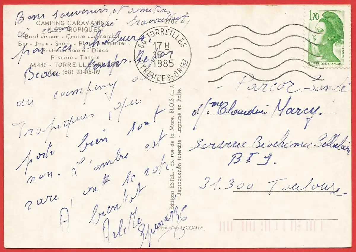 [Ansichtskarte] France - Pyrénées Orientales ( 66 ) Toreilles Plage : Camping " Les Tropiques " / Frankreich : Campingplatz.