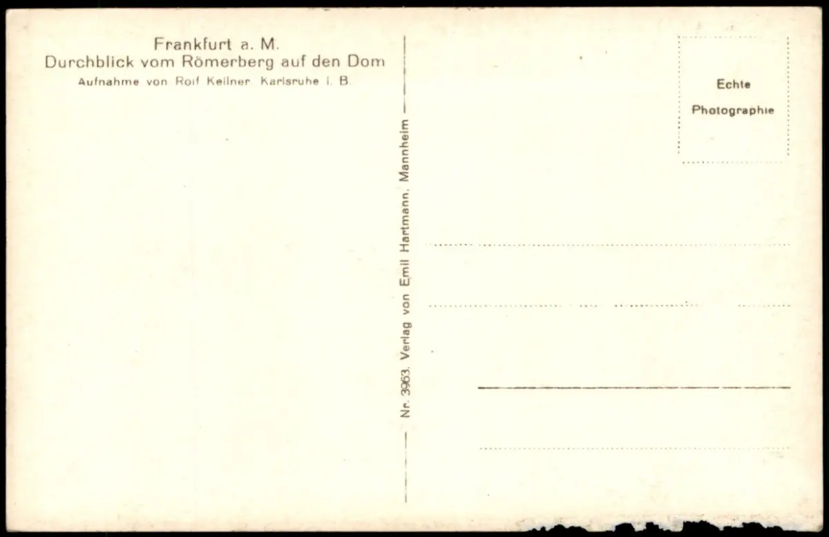 Ansichtskarte Frankfurt am Main Durchblick vom Römerberg auf den Dom 1940