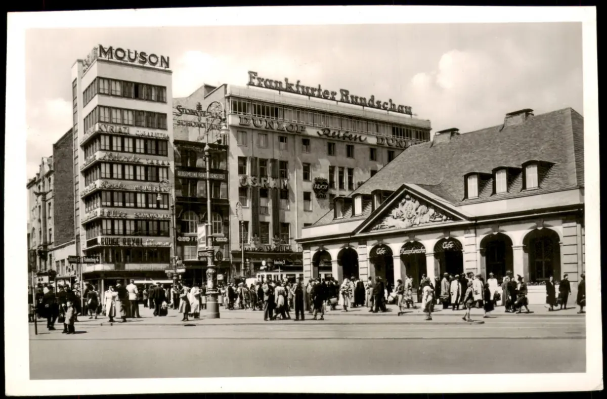 Ansichtskarte Frankfurt am Main Hauptwache belebt, Geschäftshäuser 1950