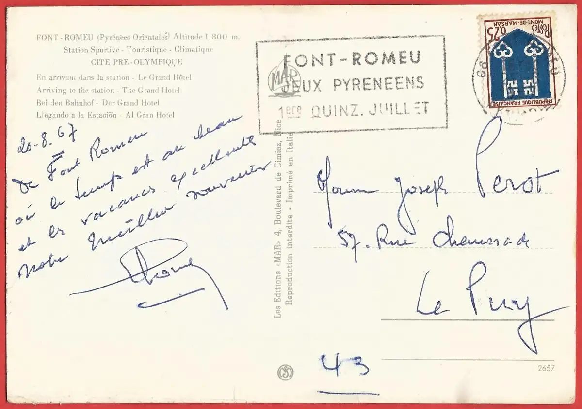 [Ansichtskarte] Frankreich ( Pyrénées - Orientales - 66 ) Font-Romeu : Der Grand Hotel.
