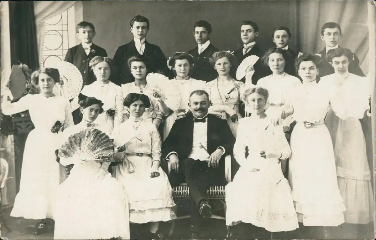 Ansichtskarte Frauen in weißer Kleidung Fächer Oberhaupt in der Mitte 1915