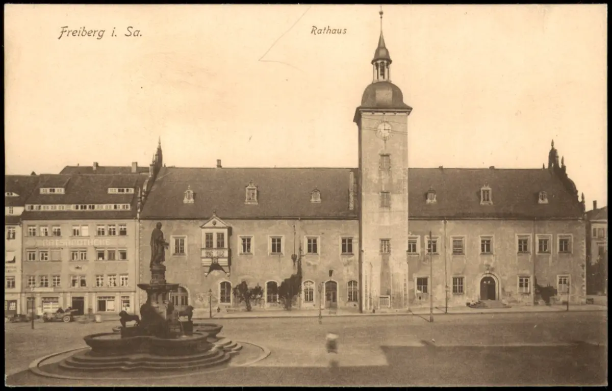 Ansichtskarte Freiberg (Sachsen) Markt und Rathaus 1914