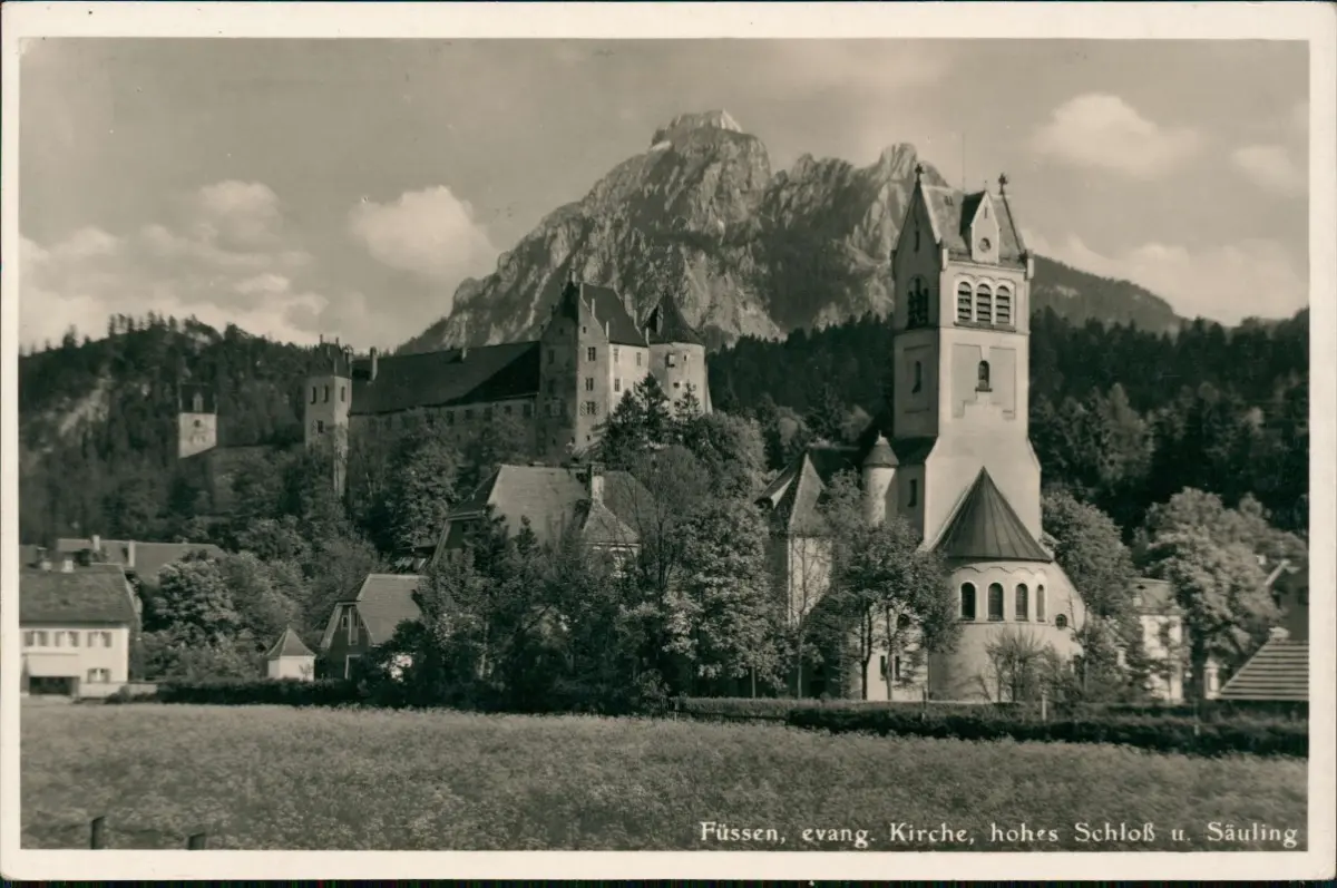 Ansichtskarte Füssen evang. Kirche, hohes Schloß u. Säuling 1930