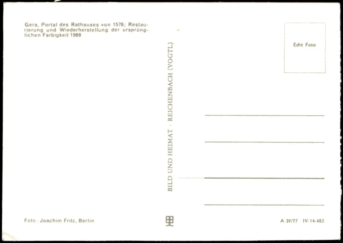Ansichtskarte Gera Rathaus Portal 1977