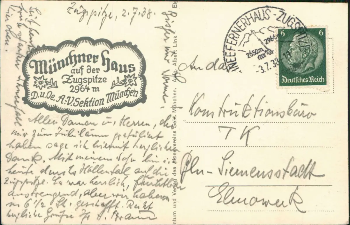 Ansichtskarte Grainau Zugspitze Münchner Haus 1938