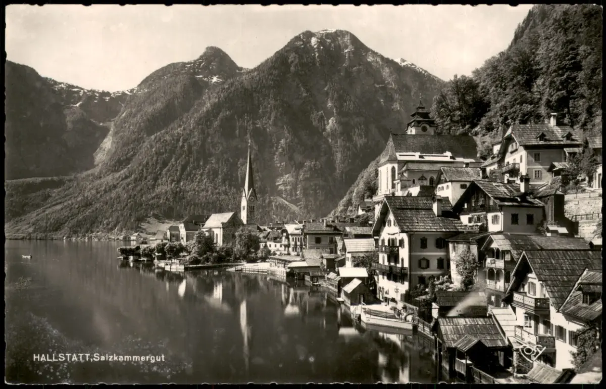 Ansichtskarte Hallstatt Ortsansicht, Ort im Salzkammergut 1960