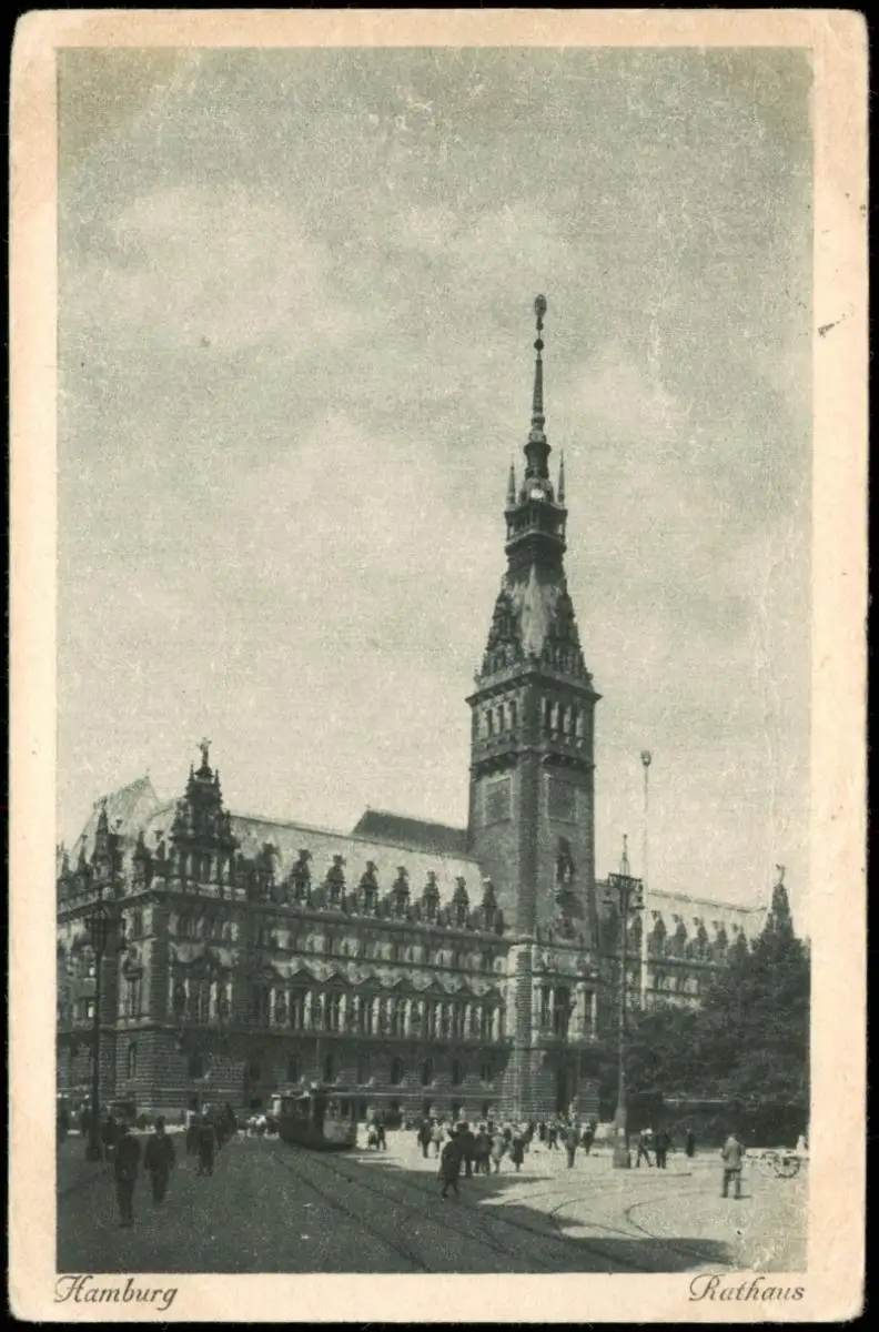 Ansichtskarte Hamburg Rathaus, Straßenbahn 1919