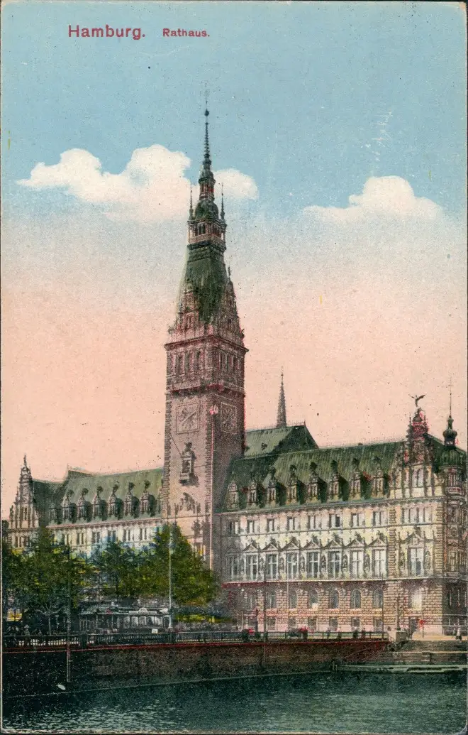 Ansichtskarte Hamburg Treppe - Rathaus 1914