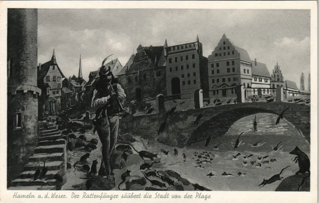 Ansichtskarte Hameln Rattenfänger säubert Stadt von Ratten Plage 1930