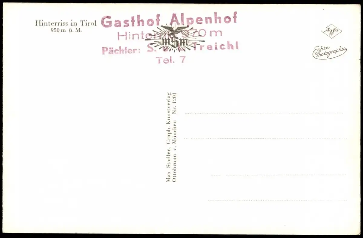 Ansichtskarte Hinterriß (Tirol) Risstal mit Risser- und Lalider Falken 1940