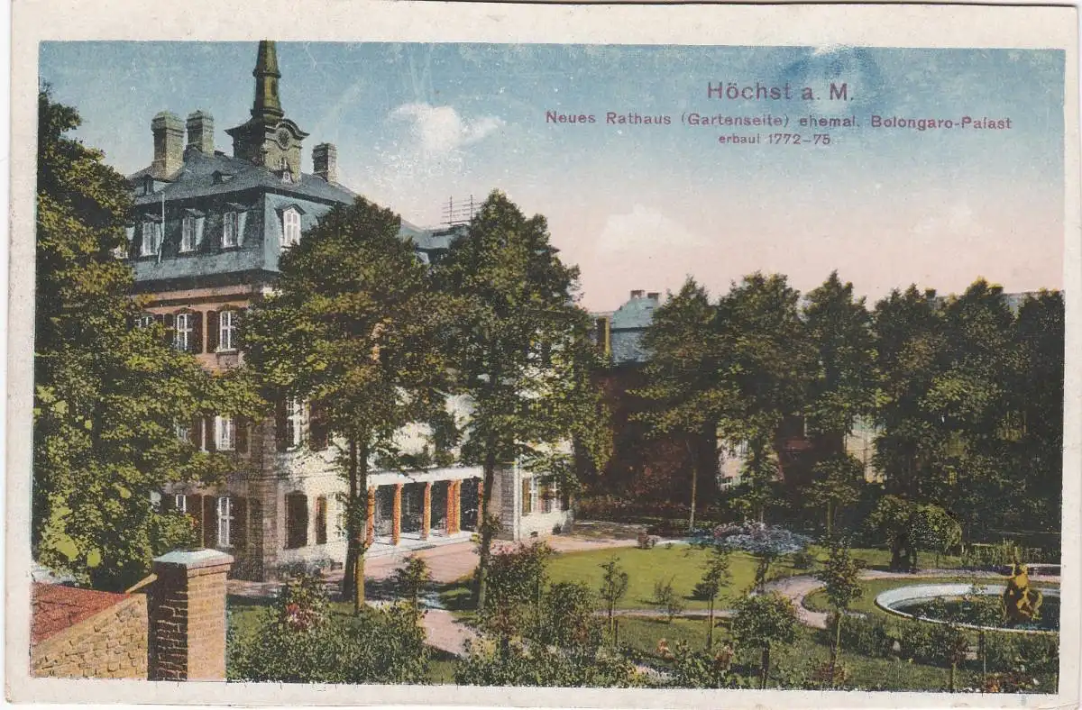 [Ansichtskarte] Höchst a. M. - Neues Rathaus (Gartenseite) ehemal Bolongaro-Palast erbaut 1772-75 - 1920 !!!.