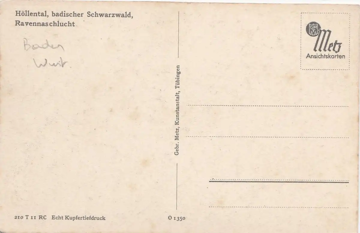 Verlagsangaben: Tübingen, Gebr. Metz, Kunstanstalt, 210 T 11 RC Echt Kupfertiefdruck O 1350.