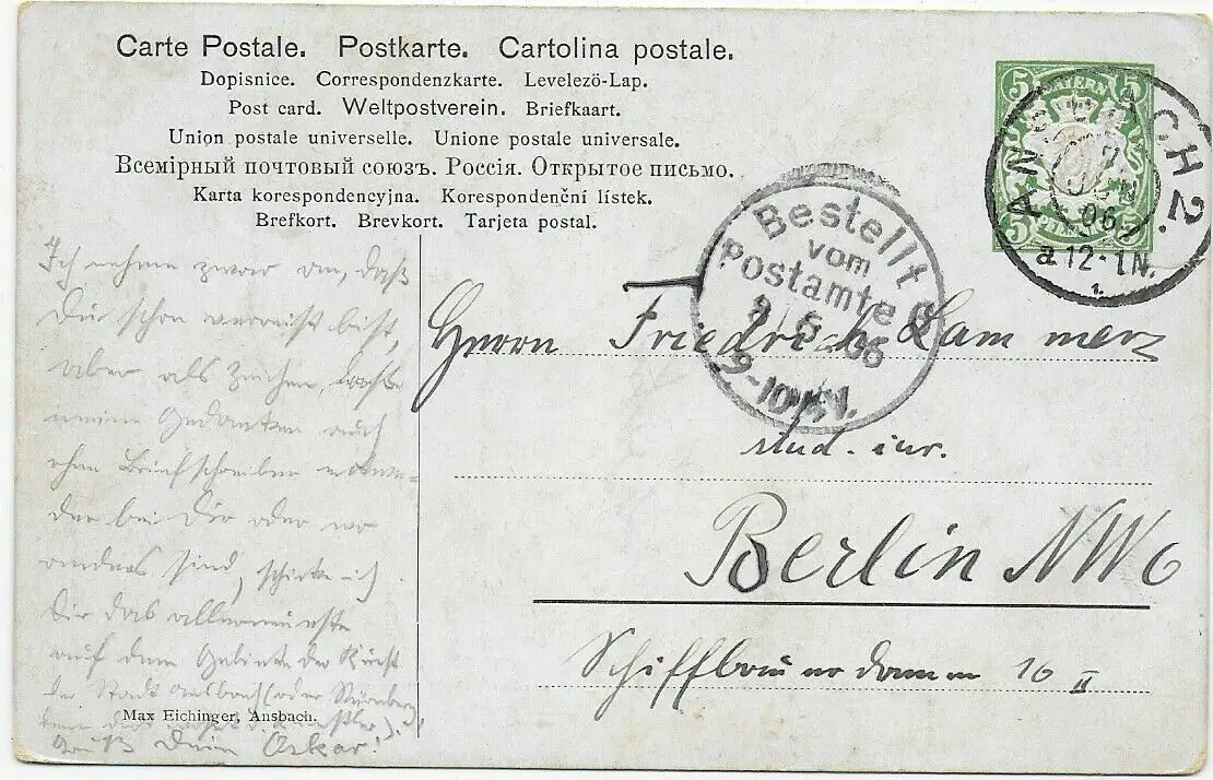 Ansichtskarte In Treue Fest, 1906, Ansbach nach Berlin