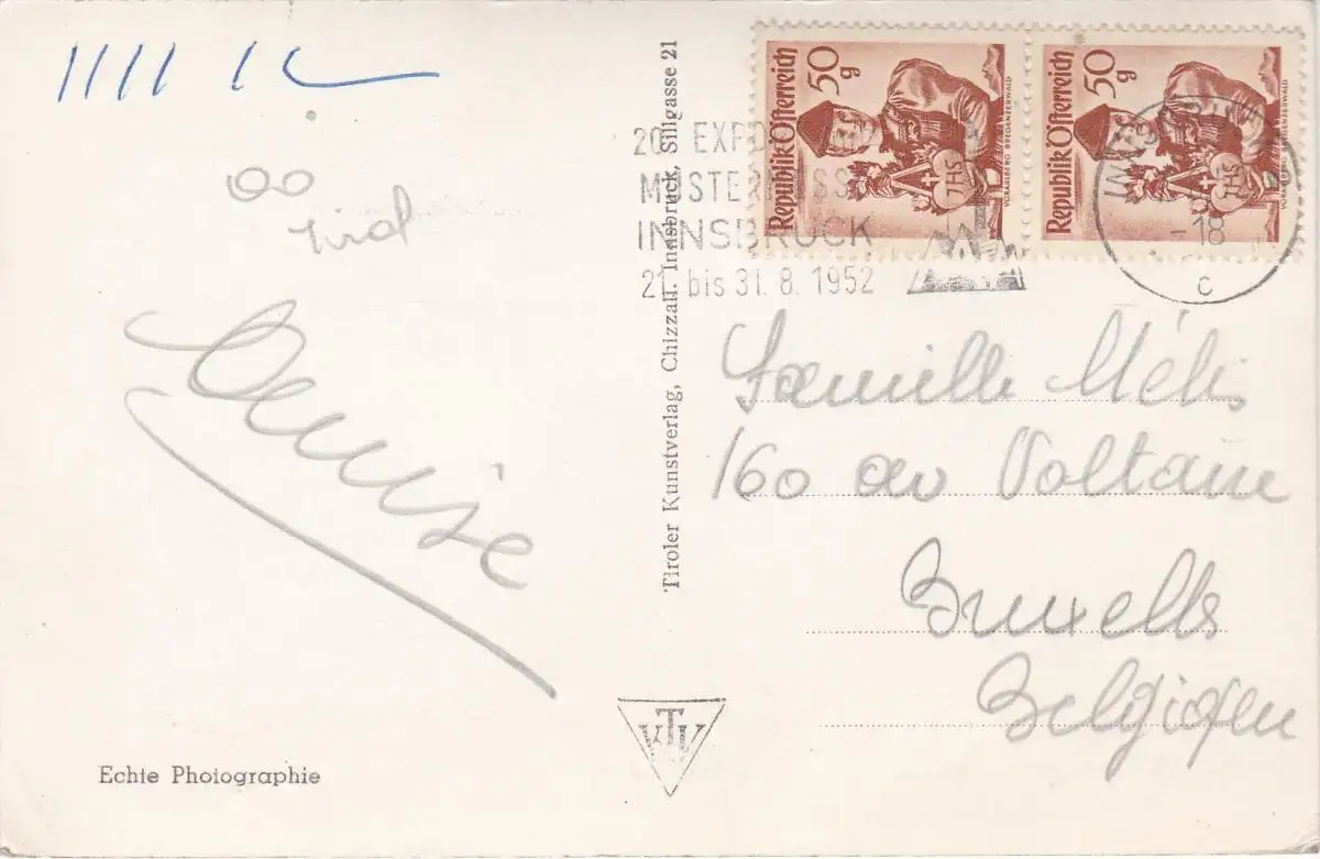 Verlagsangaben: Innsbruck, Sillgasse 21, Tiroler Kunstverlag, Chizzali, 1952.