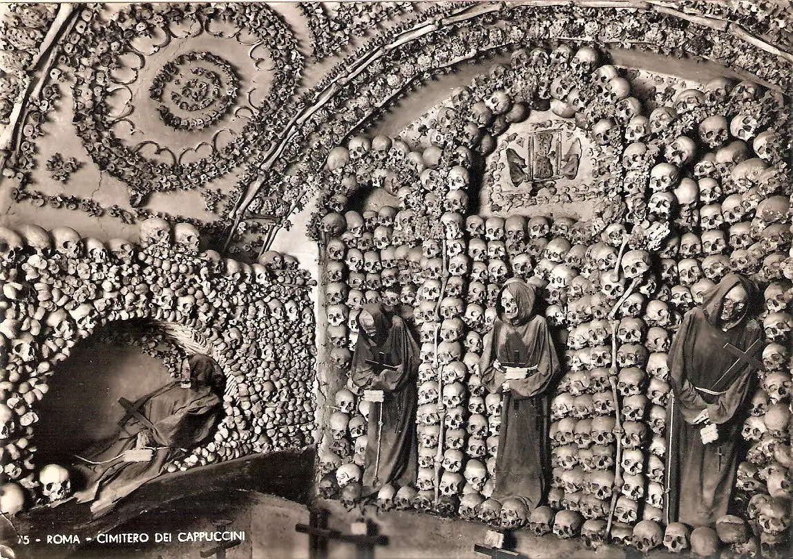 Ansichtskarte Italien - Rom - Kirche Nostra Signora della Concezione dei Cappuccini / Santa Maria Immacolata a Via Veneto - Krypta mit den Gebeinen verstorbener Kapuziner-Mönche