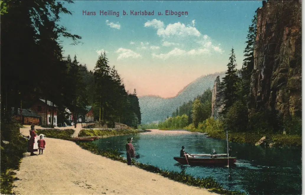 Ansichtskarte Karlsbad Hans Heiling, Ruderboot und Kinder 1913