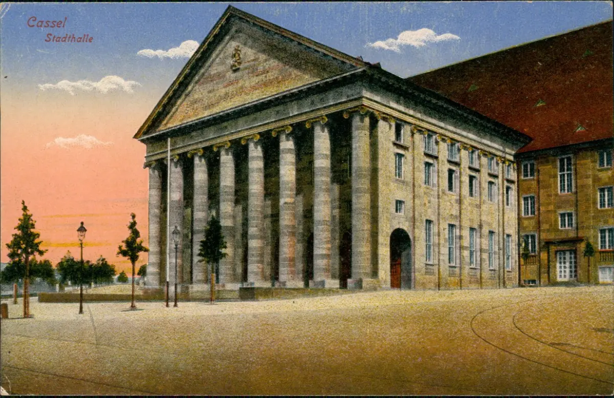 Ansichtskarte Kassel Partie an der Stadthalle Morgenrot 1913