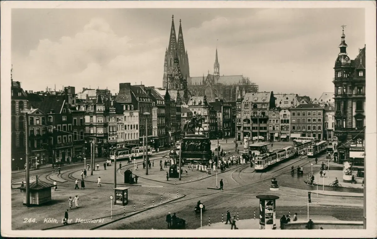 Ansichtskarte Köln Heumarkt, Kiosk - Straßenbahn 1936