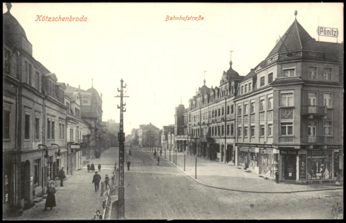 Ansichtskarte Kötzschenbroda-Radebeul Bahnhofstraße Geschäfte 1915