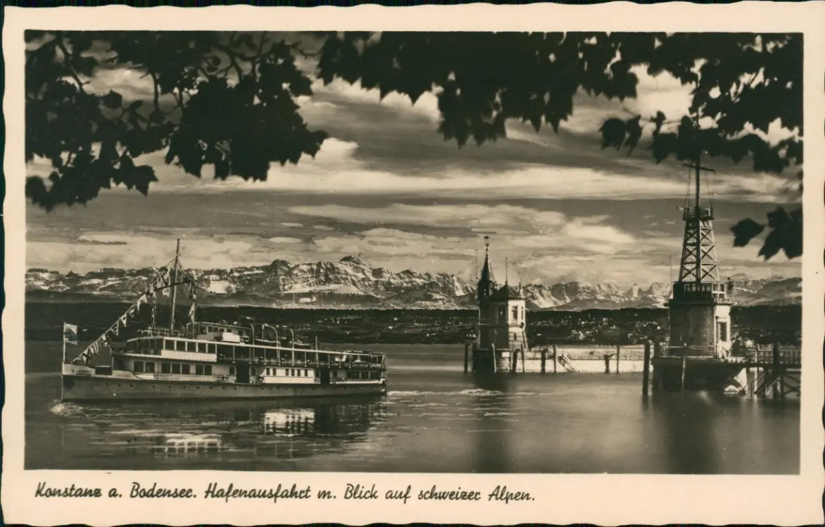 Ansichtskarte Konstanz Fotomontage Hafen Schiff Stimmungsbild 1938