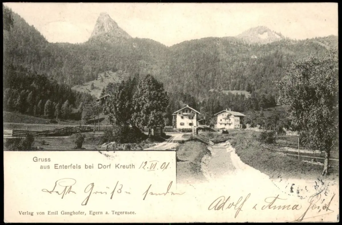 Ansichtskarte Kreuth Enterfels Straßenpartie 1901 Ankunftsstempel München B.P.B
