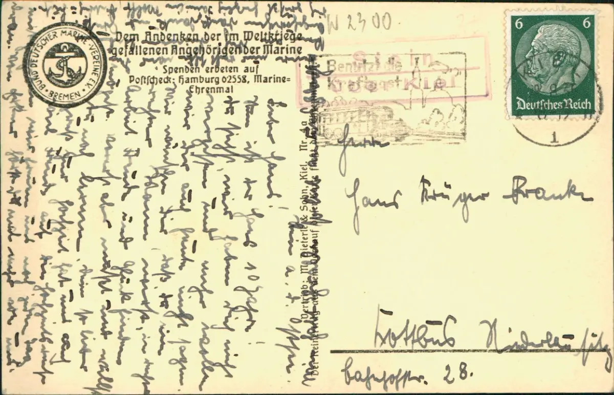 Ansichtskarte Laboe Marinedenkmal vom Meer gesehen - Fotokarte 1936