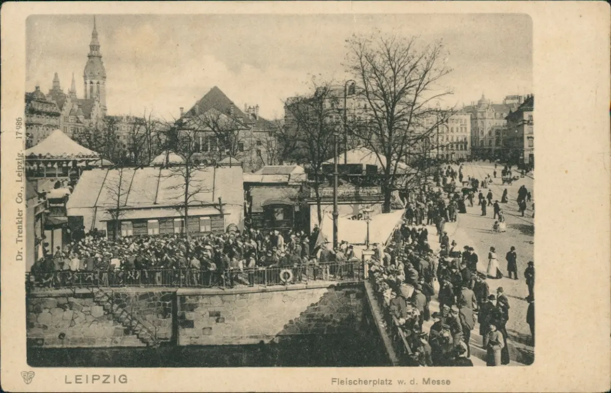 Ansichtskarte Leipzig Fleischerplatz w. d. Messe - belebt 1911