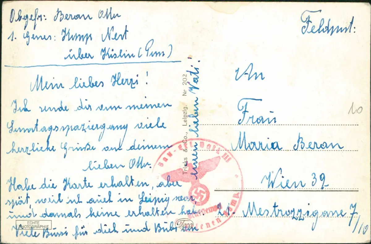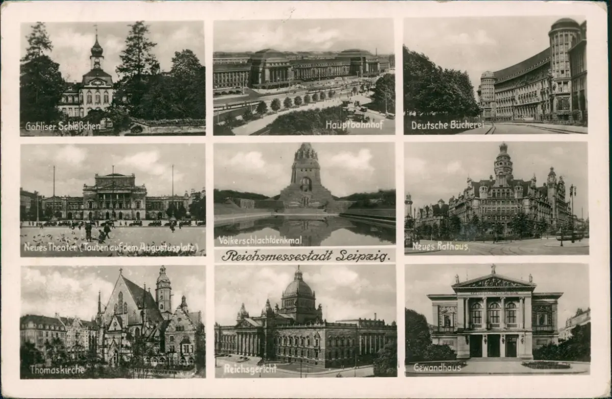 Ansichtskarte Leipzig Stadtteilansichten 1942 Roter Feldpoststempel WK2