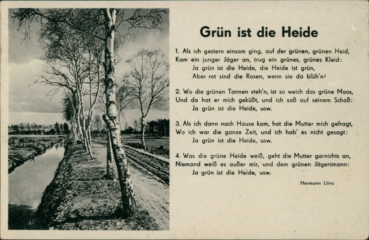 Ansichtskarte Liedkarte: Grün ist die Heide (Der kleine Rosengarten) 1952
