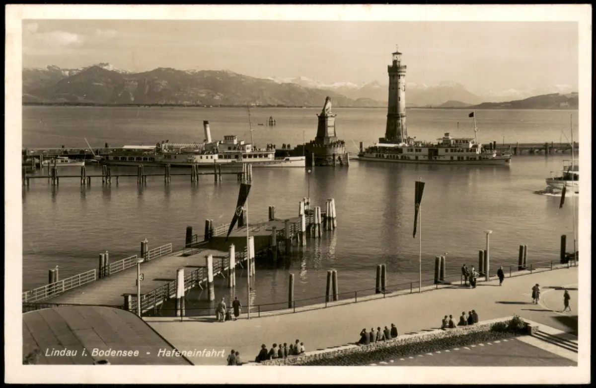 Ansichtskarte Lindau (Bodensee) Hafen Dampfer 1938