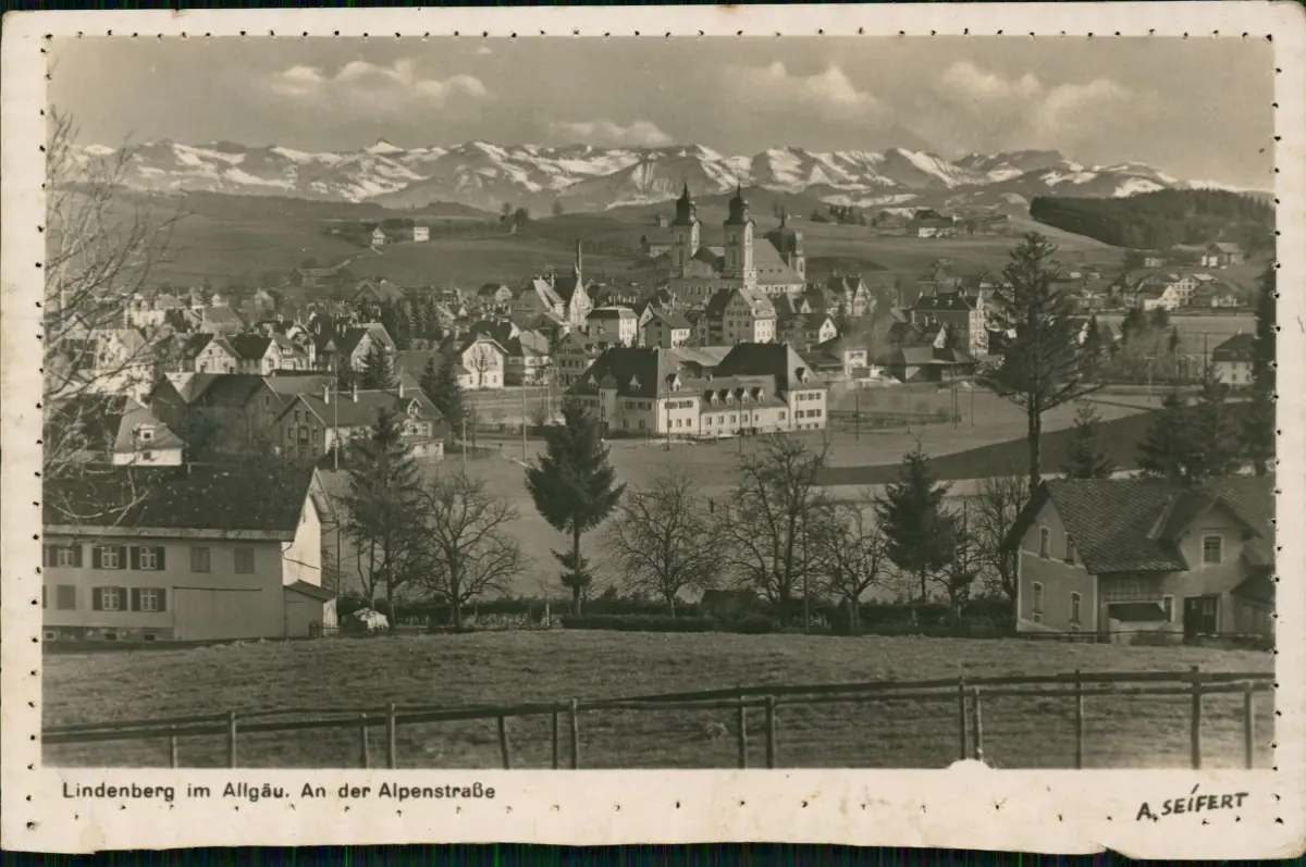 Ansichtskarte Lindenberg (Allgäu) Stadt mit Alpen 1939