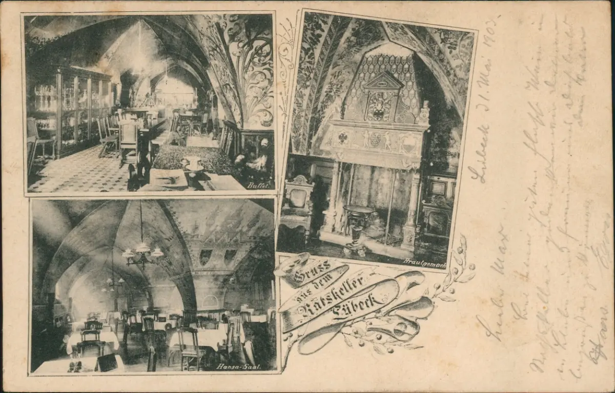 Ansichtskarte Lübeck 3 Bild Ratskeller Innenansichten 1903