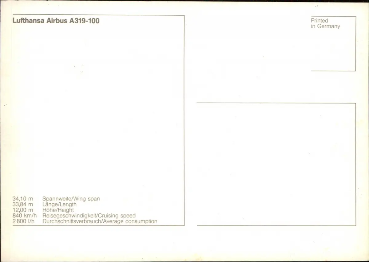 Ansichtskarte Lufthansa Airbus A319-100 Flugzeug Airplane Airline 1990