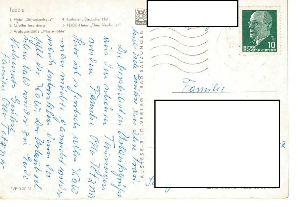 Ansichtskarte Luftkurort Tabarz am Inselsberg - Thüringen - gelaufen 1972