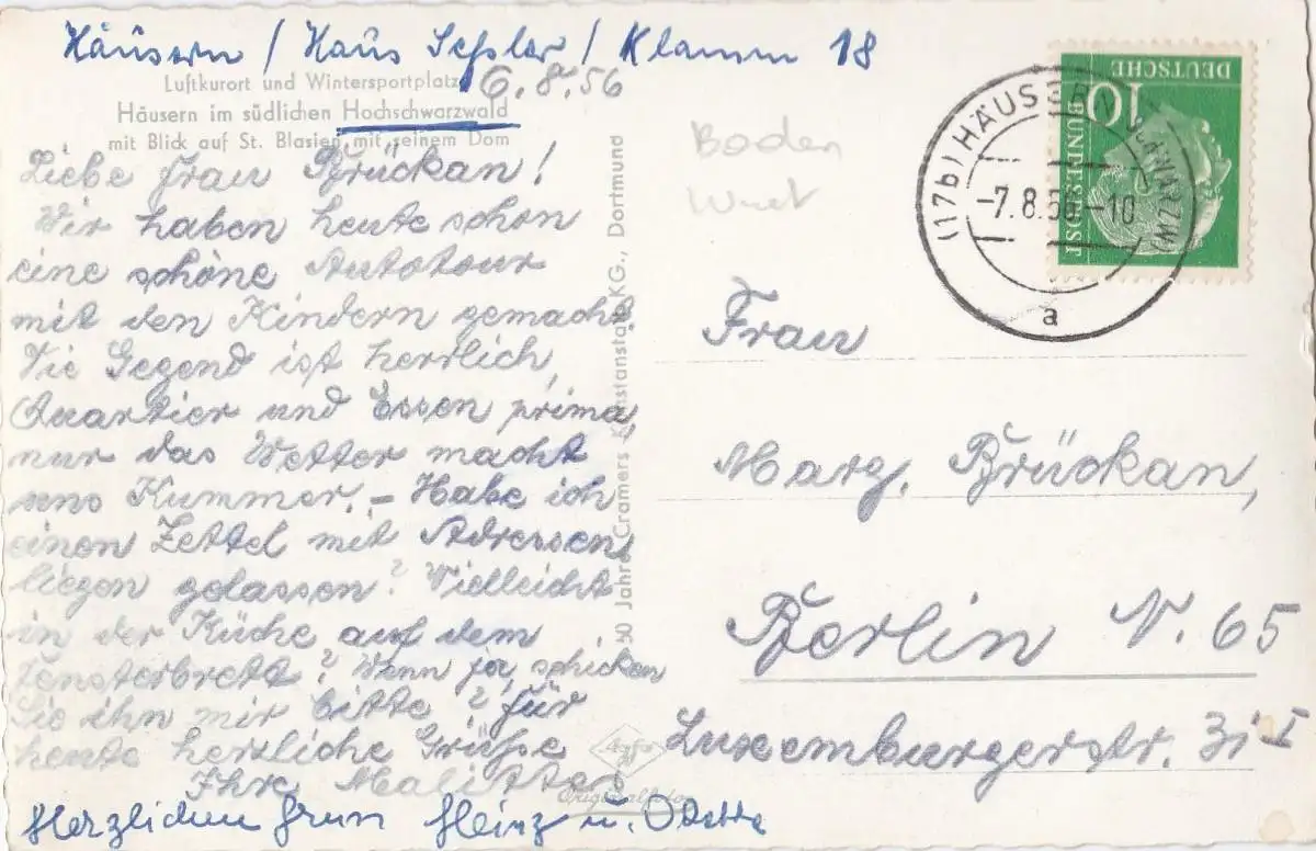 [Ansichtskarte] Luftkurort and Wintersportplatz - Häusern im südlichen Hochschwarzwald mit Blick auf St. Blasien mit seinem Dom - 1956.